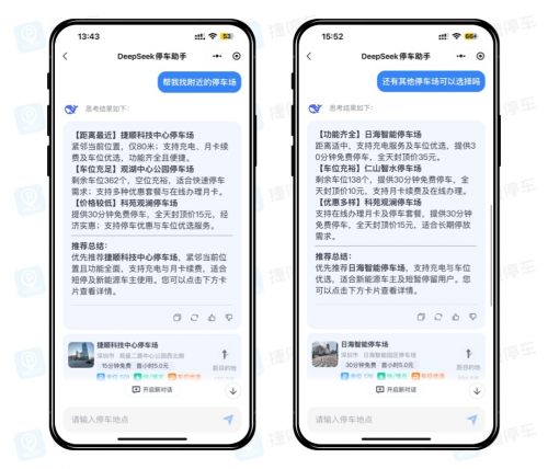捷停车上的DeepSeek智能助手,并非冷冰冰的算法,而是推动停车行业发展的又一脚油门,也是车主们身边“懂我”的停车助手。