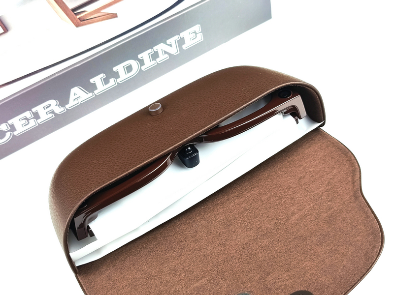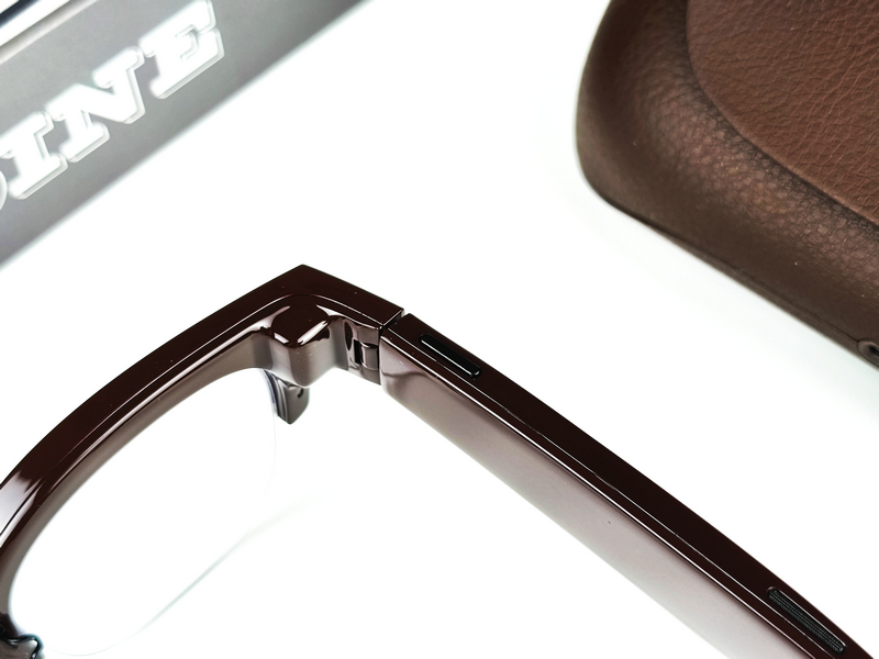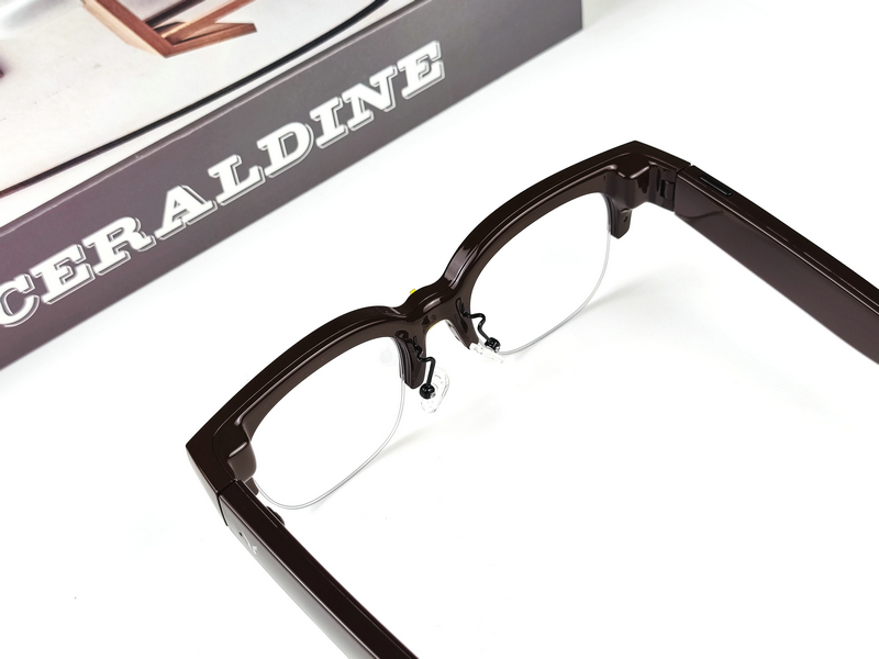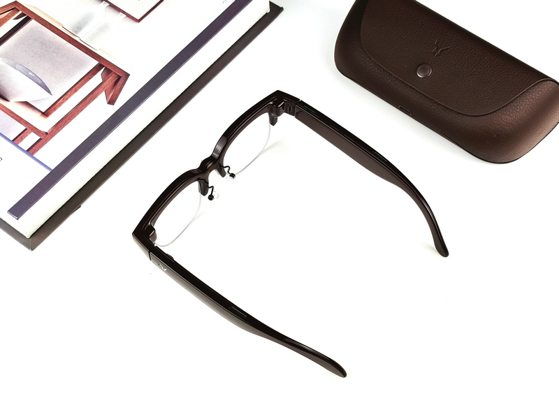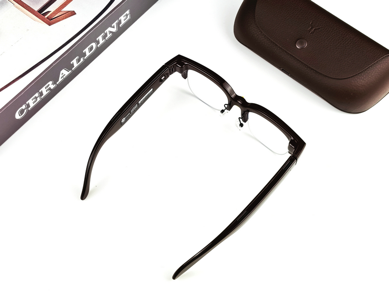 半框设计是G1101最具辨识度的外观特征,这种设计打破了传统眼镜的常规造型,给人一种时尚、前卫的感觉。而巧克力棕色的镜框搭配银色金属转轴,整体风格偏向年轻化但又不过分张扬,也没有过多的装饰,展现出了一种低调的奢华,无论是日常通勤还是办公场合都能自然融入,展现出独特的时尚魅力。
