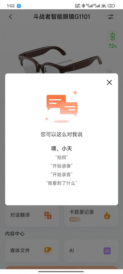 硬件配置也是这款设备的一大卖点。打开“智享家”APP连接眼镜后,系统显示G1101搭载了高通第一代骁龙AR1平台,这是一款专为AI设备设计的芯片,具有强大的处理能力和极低的功耗。虽然参数上不如手机处理器抢眼,但在实际使用中表现相当稳健,无论是高清拍摄、摄像还是AI语音助手等功能,都能流畅地运行,为用户带来流畅的使用体验。笔者在分别运行AI语音助手、后台录音和图像识别的任务测试中,都没有感受到明显的卡顿或延迟,指令响应始终保持流畅,这说明骁龙AR1的算力足以支撑G1101的核心功能需求。