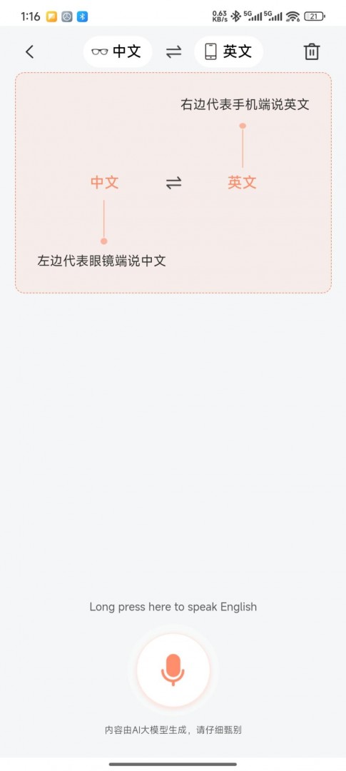 它还支持多语言翻译功能,不过目前仅支持中英互译,其他语言支持正在研发中。实测中简单对话的翻译准确率较高,但遇到复杂句式时偶尔会出现语序问题。翻译结果可通过语音播报,在静音场合也可通过手机APP查看。