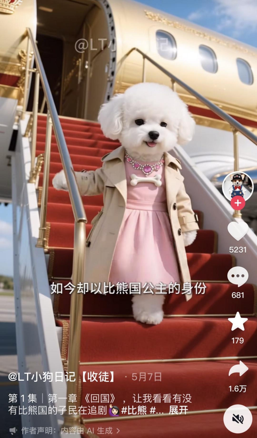 当AI工具普及到人人可用,技术不再是稀缺资源,内容便成了硬通货。前文中提到的《霸道雪总爱上我》、《比熊殿下她权倾天下》等系列短剧背后的账号“LT小狗日记”在接受《广州日报》采访时表示,团队去年就开始做AI萌宠视频,从早期的宠物拟人化视频,到借鉴“霸总短剧”制作的萌宠爽剧,再到如今计划尝试做全网第一档AI宠物恋爱综艺,只有不断提升内容质量才能保持内容的竞争力。