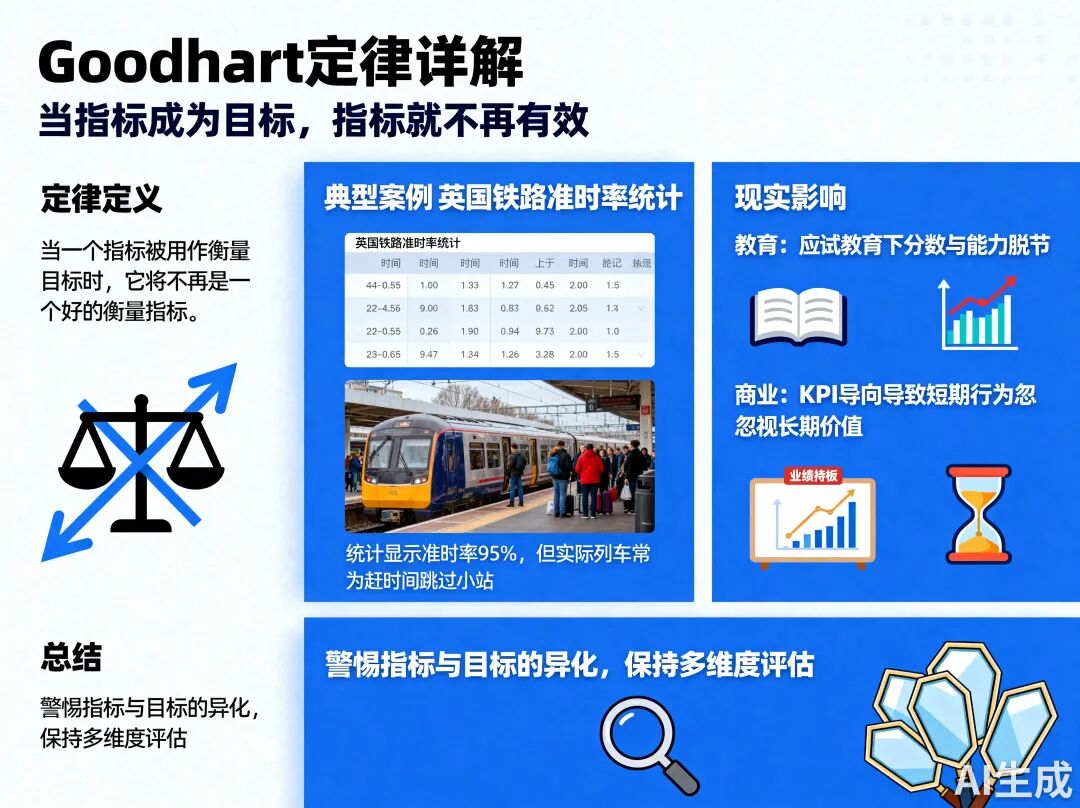 这就是Goodhart定律——它像一面镜子,照出了系统中的投机取巧和目标的异化。