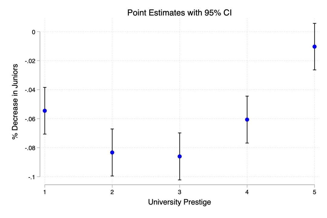 然后,他们观察了来自不同等级学校的初级员工,在AI采纳者公司里的就业变化情况。