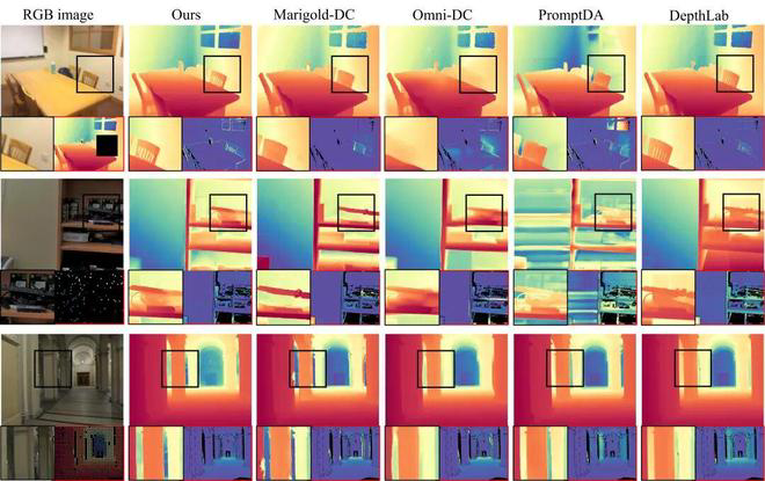 模型在7个真实数据集上实现了出色的零样本迁移,可处理深度补全、超分辨率和修复任务,甚至能应对混合先验情况,并支持测试时切换预测模型,提供灵活的精度-效率权衡。