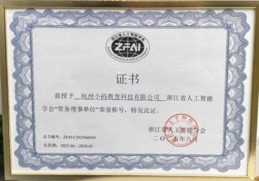 9月18日,在浙江国际影视中心举行的2025浙江省“人工智能 +”行动主题活动暨浙江省人工智能学会会员活动日上,国内少儿AI 编程教育领军品牌小码王正式获授“浙江省人工智能学会常务理事单位”。这一荣誉标志着小码王在人工智能教育领域的前沿探索与行业贡献获得权威认可,将进一步推动产学研深度融合,助力浙江人工智能产业生态建设。