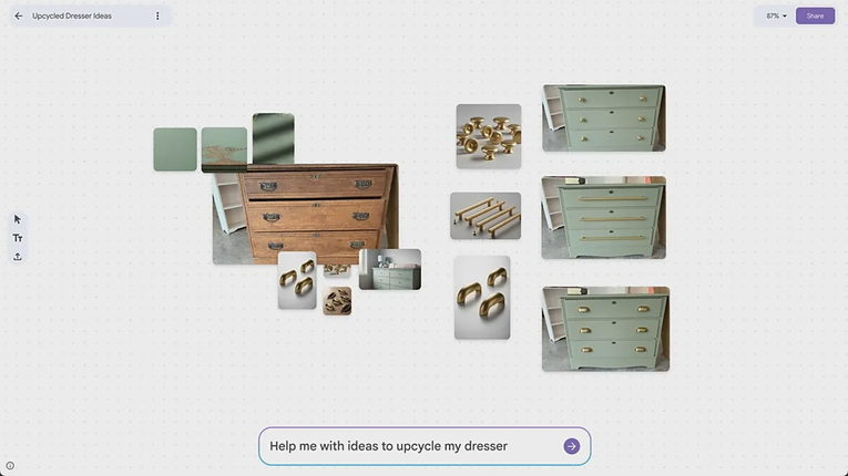 Mixboard 支持自然语言编辑,能够直接修改或组合图片,这一功能由谷歌新研发的图像编辑模型 Nano Banana 驱动。