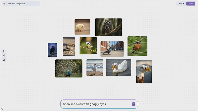 援引博文介绍,用户可通过输入文本提示或选择预制板,快速启动创作,涵盖家居装饰、产品设计等多种场景。在使用过程中,用户既可以上传自己的图片,也能通过描述生成视觉内容,例如“展示孟菲斯风格的杯子、碗和盘子”或“展示长有滑稽眼睛的鸟”。