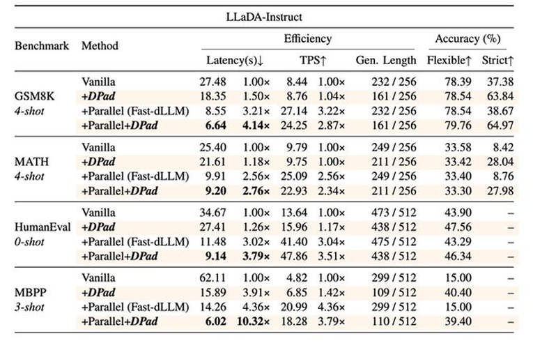 图6 DPad在LLaDA-Instruct上的效果