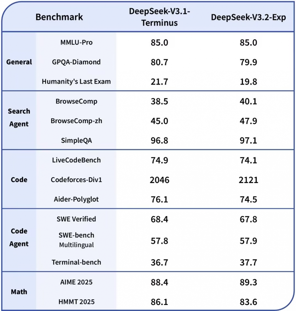 为了严谨评估引入稀疏注意力带来的影响,团队将DeepSeek-V3.2-Exp的训练设置与V3.1-Terminus进行了严格对齐。