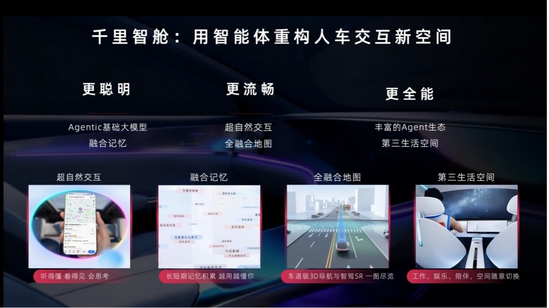 在智能座舱领域,大模型与座舱的结合未来应用前景广阔,不仅将极大提升用户体验,其客户价值也绝不低于智能驾驶。千里科技汇集了行业优秀的智能座舱研发团队,基于行业领先的多模态大模型和AI技术,致力于重构人车交互的体验。千里科技打造的新一代智能座舱Agent OS,实现了超自然交互、融合记忆、全融合地图和第三生活空间等功能,旨在让座舱更聪明、更流畅、更全能,将人车交互体验提升到新的维度。