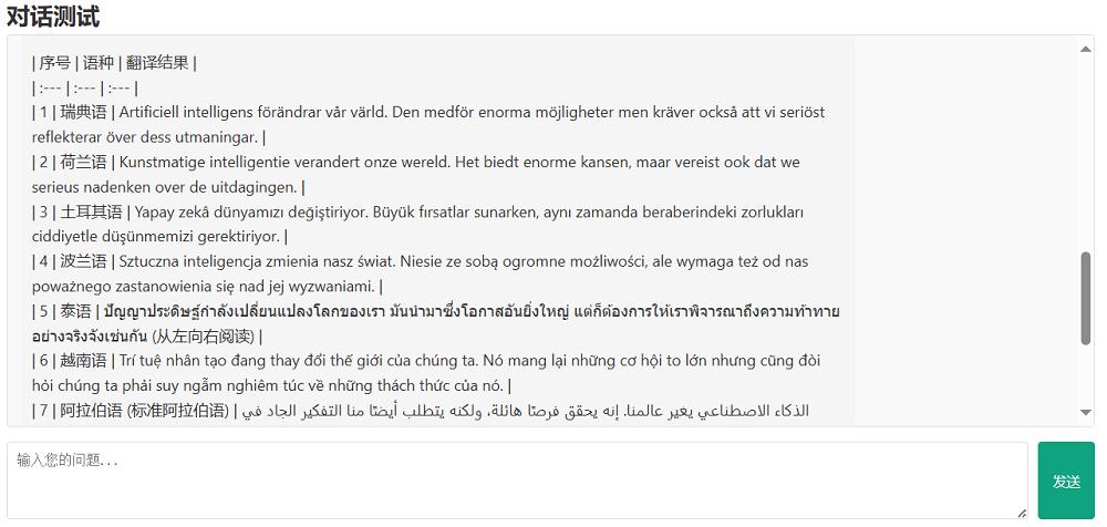 智东西尝试着让DeepSeek-V3-Terminus将这句话翻译为7种小语种:“人工智能正在改变我们的世界,它带来了巨大的机遇,也需要我们认真思考其挑战。”