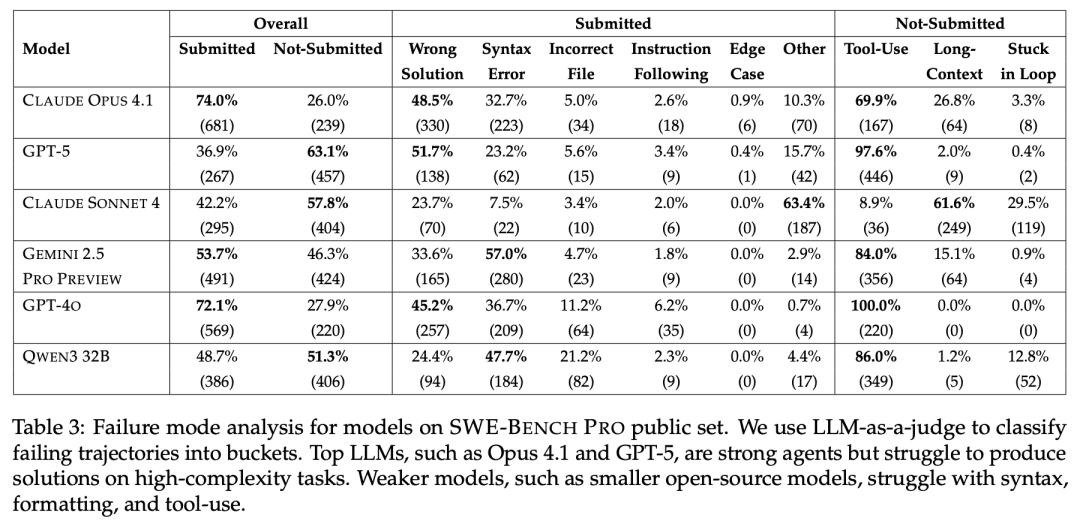 不同顶尖模型,在SWE-Bench Pro上的表现如下表1所示。