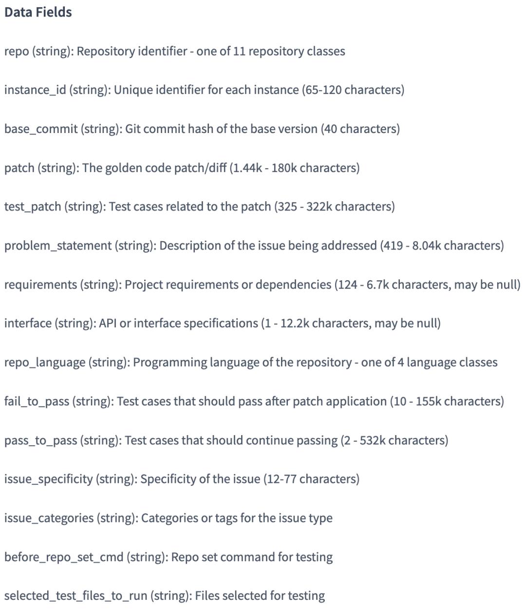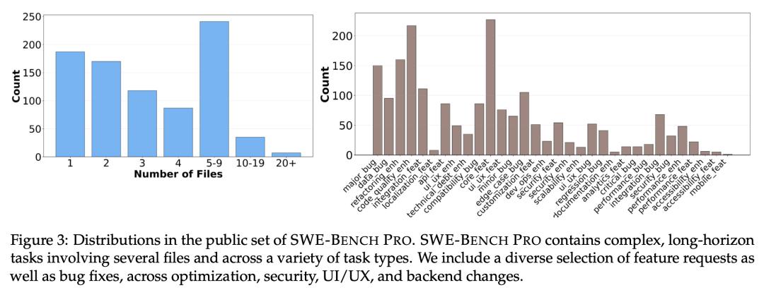 为了确保任务复杂度,Scale AI排除了1-10行代码「小修小补」的任务,只保留需要多文件、实质性修改的问题。