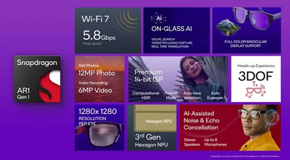 核心的瓶颈在于芯片。无论是Meta还是国内厂商,大多采用的是高通骁龙AR系列这类“通用型”解决方案。它们本质上是手机SoC的变种,并非为AI眼镜这种需“全天候开启、超低功耗”的极端场景而生。