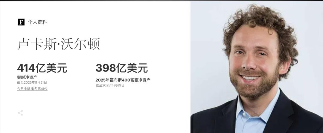 有意思的是,紧随Edwin Chen之后的Lukas Walton是沃尔玛创始人山姆·沃尔顿的孙子,2005年其父约翰·沃尔顿因飞机失事去世后,他继承了大笔遗产,在福布斯400榜单上,他的净资产为398亿美元。