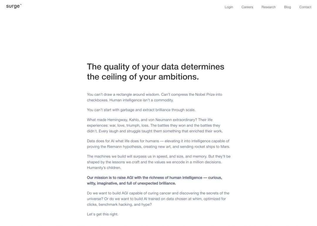 他希望Surge能帮助引领AI行业的发展,这意味着他要将自己定位为更具影响力的思想领袖。