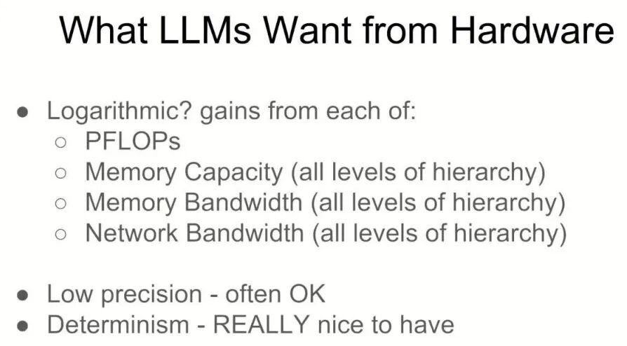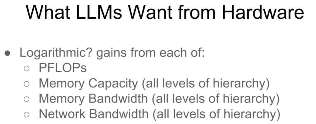 演讲的信息归结为:在集群中拥有更大、更快的设备将导致LLM的增益。