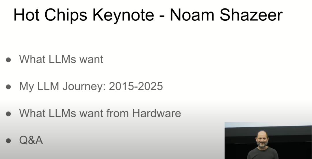 在硅谷举行的科技盛会Hot Chips 2025首日的主题演讲上,谷歌DeepMind的Noam Shazeer回答了这一问题,发表了题为《下一阶段AI的预测》的主题演讲。