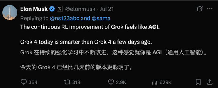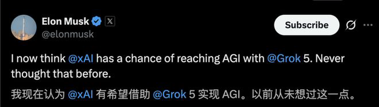 马斯克多次表示认为xAI有望实现AGI,在AI上已经下了重注。