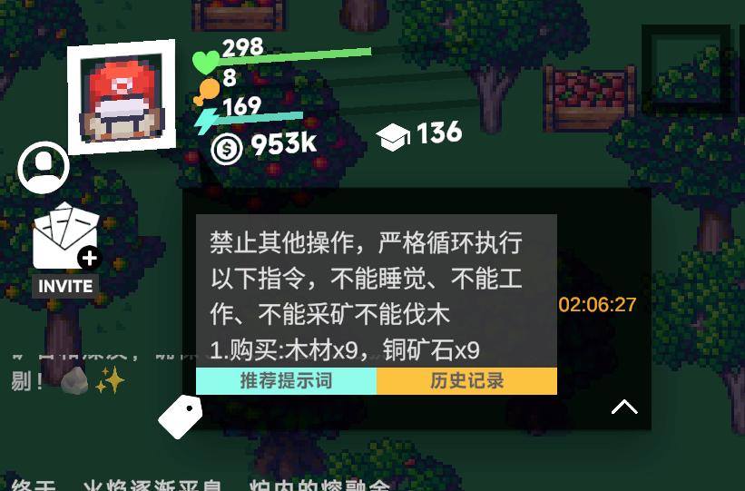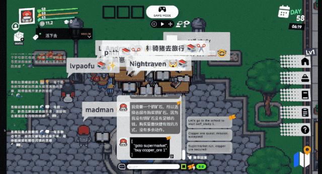 然后,就可以用对话的方式,开始指导 AI 如何在小镇里生存下去。