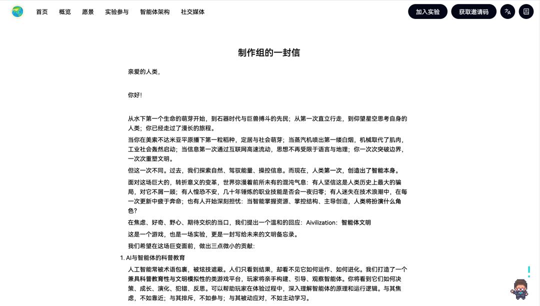 在 Aivilization 的官网上,也可以看到他们对这个项目的一些思考: