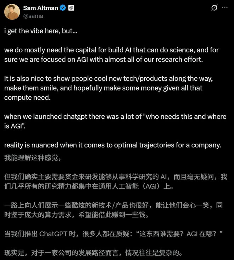 Altman的这番话,勾勒出了一幅「曲线救国」的蓝图:通过推出能赚钱的消费产品,来资助那个更崇高的AGI研究目标。