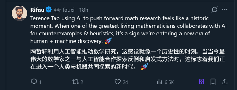当然,跳出数学领域,陶哲轩的打样无疑也在告诉我们:如何用 AI 相当关键。