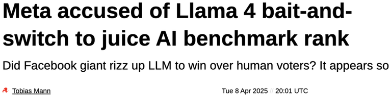 而且,在 Llama 4 发布过程中也出现了问题:将一个未公开的实验版本提交到 LMArena 用于排名。