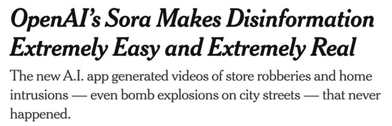 https://x.com/EpochAIResearch/status/1974172794012459296 https://x.com/GabrielPeterss4/status/1974163116691997149 https://x.com/ctgptlb/status/1973966473011048457 https://blog.samaltman.com/sora-update-number-1 https://www.nytimes.com/2025/10/03/technology/sora-openai-video-disinformation.html