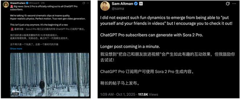 如今,更强版的Sora 2 Pro效果更加炸裂。此前,奥特曼称ChatGPT Pro用户可使用Sora 2 Pro生成内容。