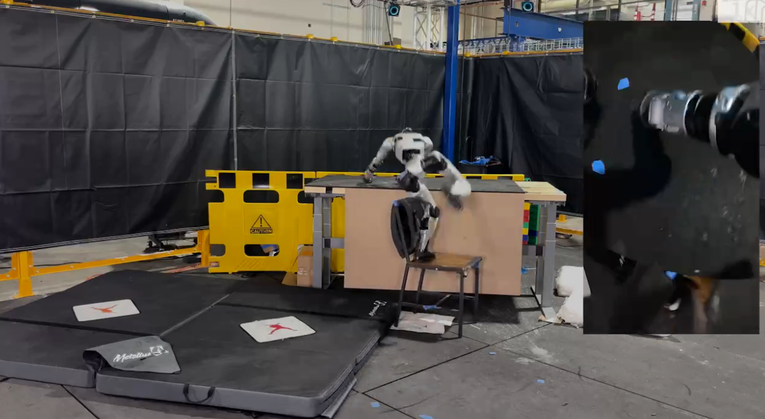 该团队放出了多个演示案例,包括翻滚、爬桌子、跳上小箱子、爬行等。