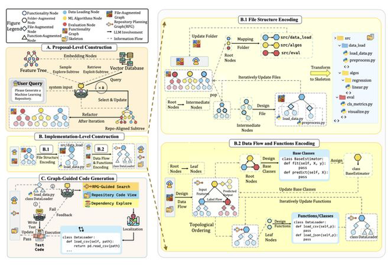 为解决这一问题,微软提出了Repository Planning Graph (RPG),以结构化图谱替代脆弱的文字规划,把功能、文件、依赖和数据流统一在一张蓝图中,从而让仓库生成首次具备可控、可扩、可验证的基础。