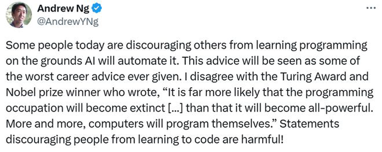 吴恩达指出:学习编程和其他基本技能仍然是未来的关键。
