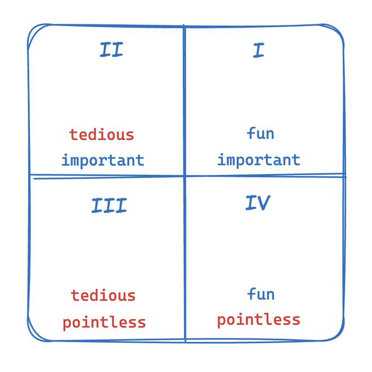 我们可以参考下图的任务分类,将III类任务交给AI,而要尽可能多地亲自做I类任务。